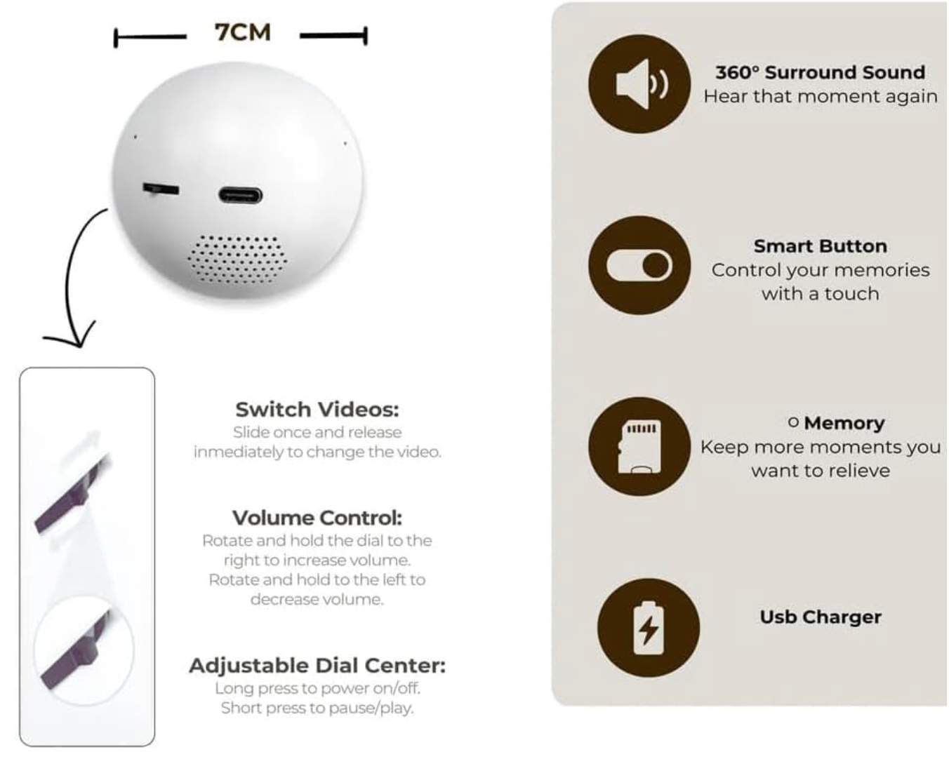 The world’s first digital ornament that brings your memories to life! Share the joy of your favorite moments — from birthdays and holidays to everyday smiles — all beautifully displayed in one magical ornament. Watch your photos and videos come to life, lighting up your home with love and laughter. It’s more than just décor — it’s a heartwarming way to keep your family’s happiest memories shining bright, every single day.